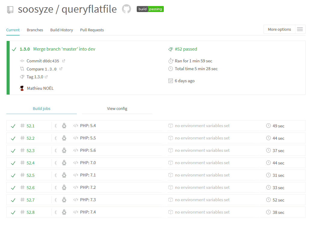 Notre bibliothèque de gestion de données a été mise à jour pour pallier à un bug concernant les requêtes effectuées avec la méthode list(). De plus, des tests unitaires exécutés avec succès permettent de supporter la version 7.4 de PHP.